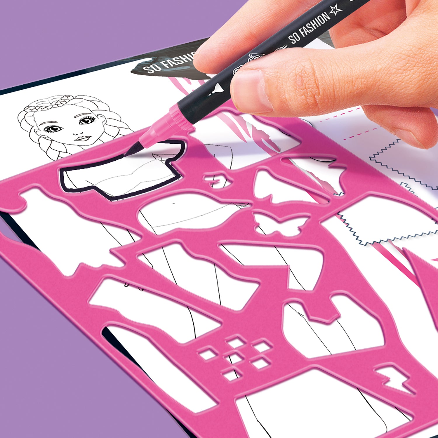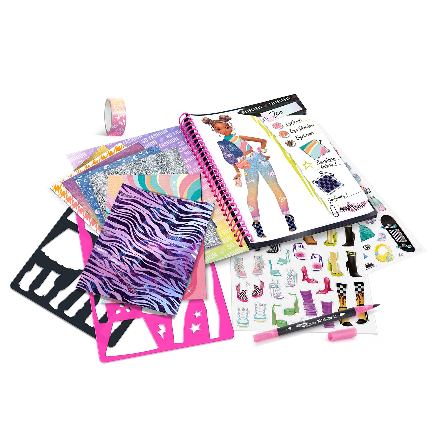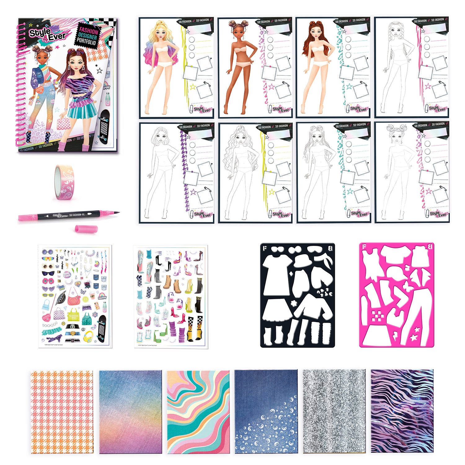 Mit dieser voll ausgestatteten Designer Mappe kannst du ganz nach deinem Geschmack jede Menge toller Mode Kreationen entwerfen. Stoffe, Papier Designs, Stifte, Schablonen für verschiedene Schnittmuster, Klebestift und und … alles, was du brauchst ist dabei. Und das Ringbuch hast du am besten immer mit, um Inspirationen gleich festzuhalten.