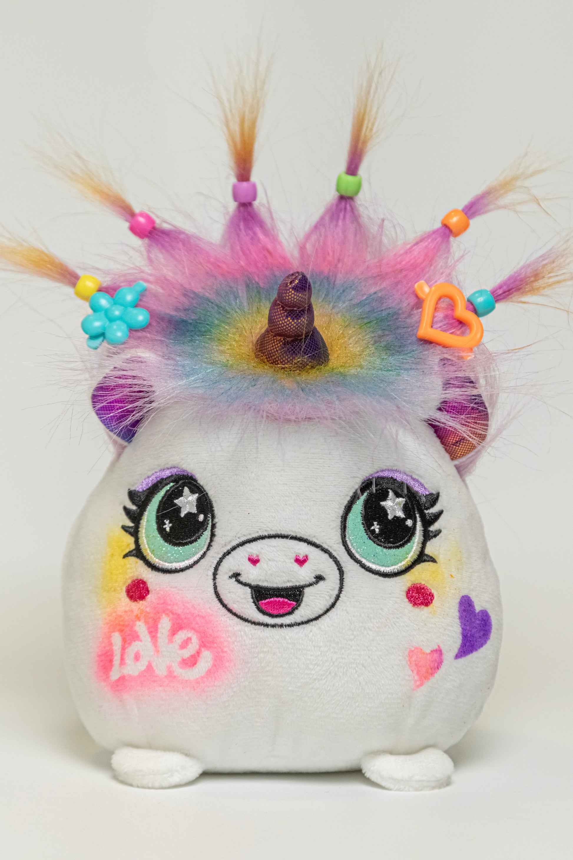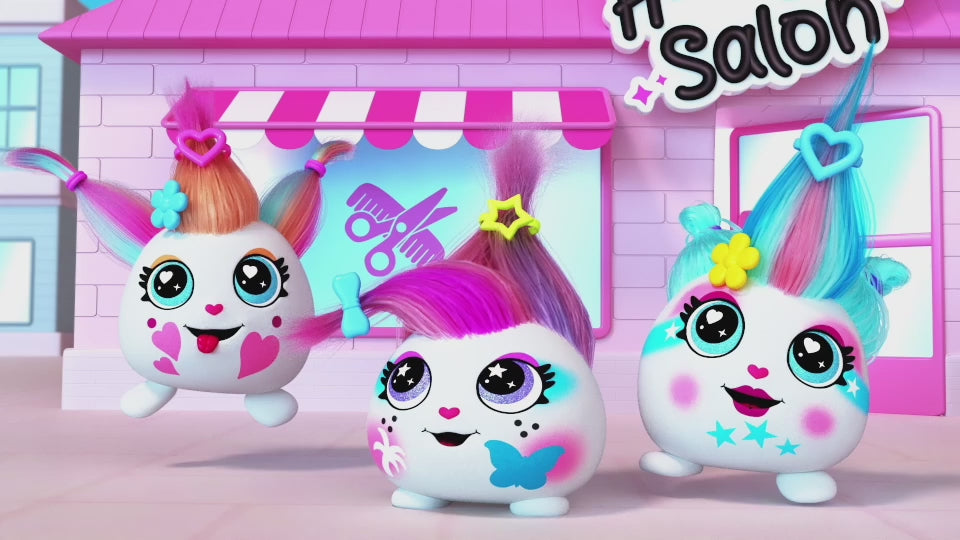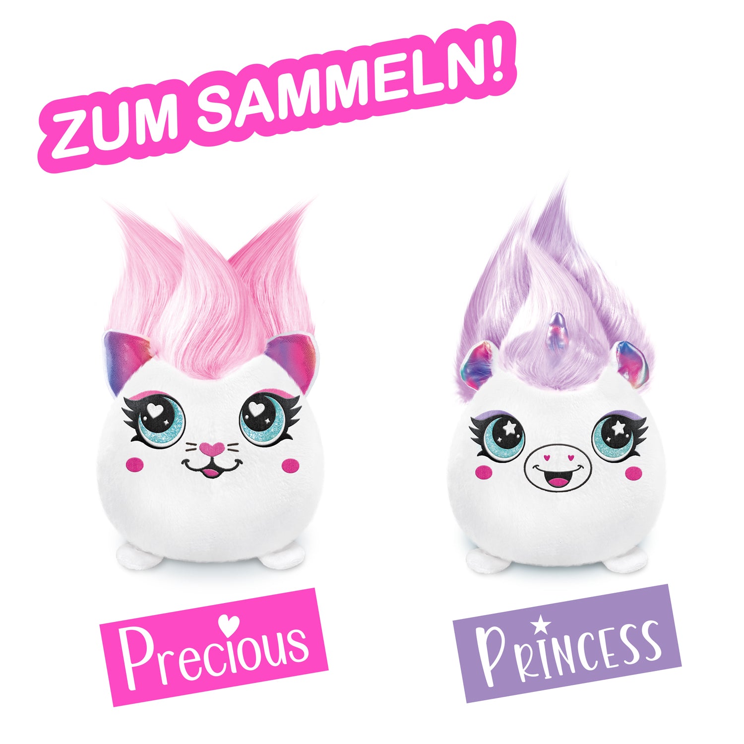 Hallo! Dürfen wir uns vorstellen. Wir sind Princess und Precious. Färbe uns und unsere Haare mit dem coolen Airbrush-Föhn, den Farbmarker Stiften und den verschiedenen Schablonen. Style dann noch unser Haar im lustig trendigen Look. Und wenn du uns anders aussehen lassen willst, wasche uns einfach unter lauwarmem Wasser und es kann wieder von Neuem losgehen! 2 Charaktere zum Sammeln.