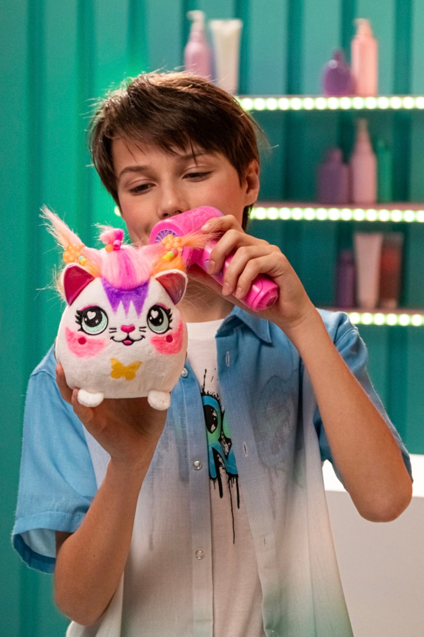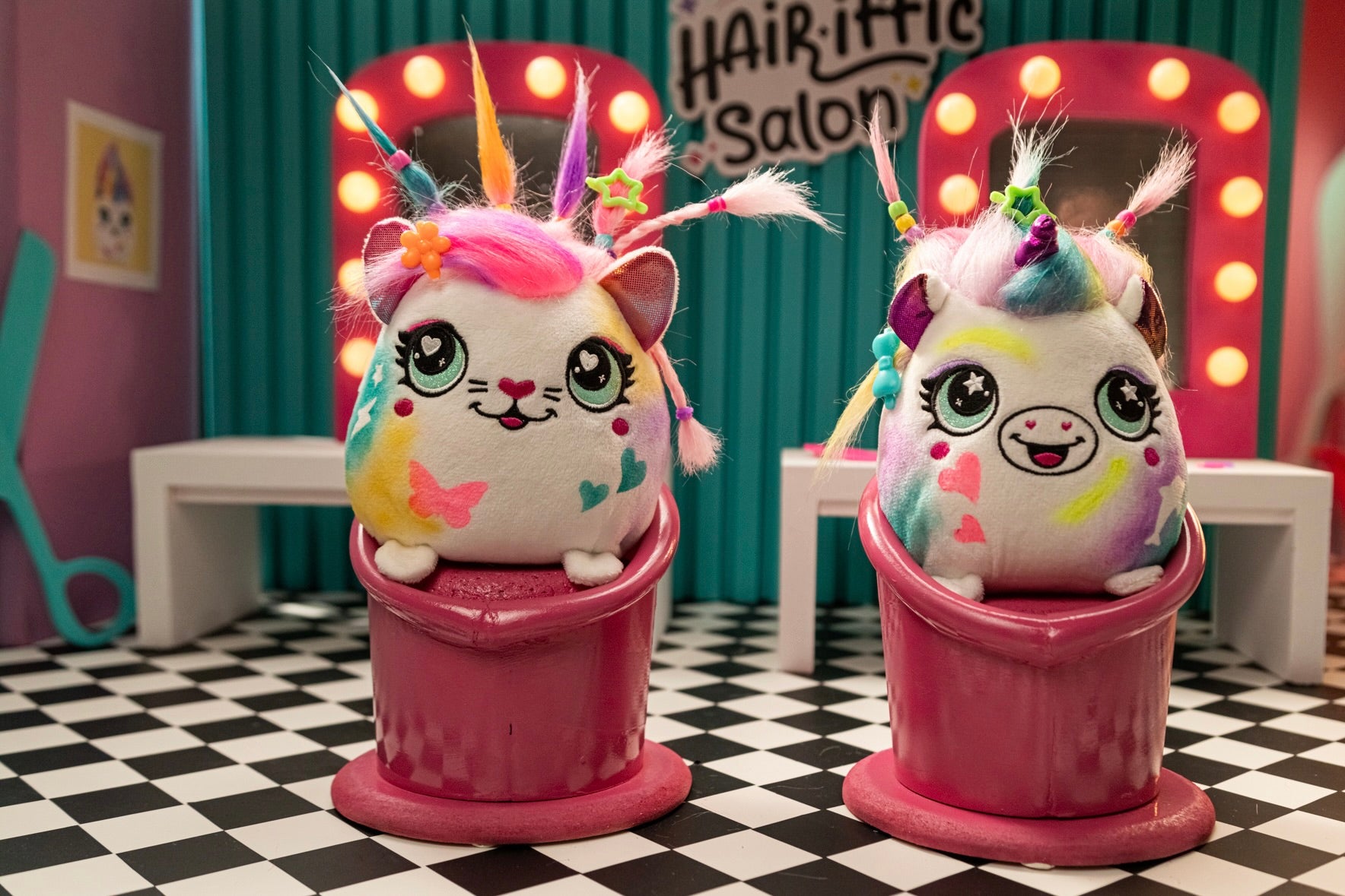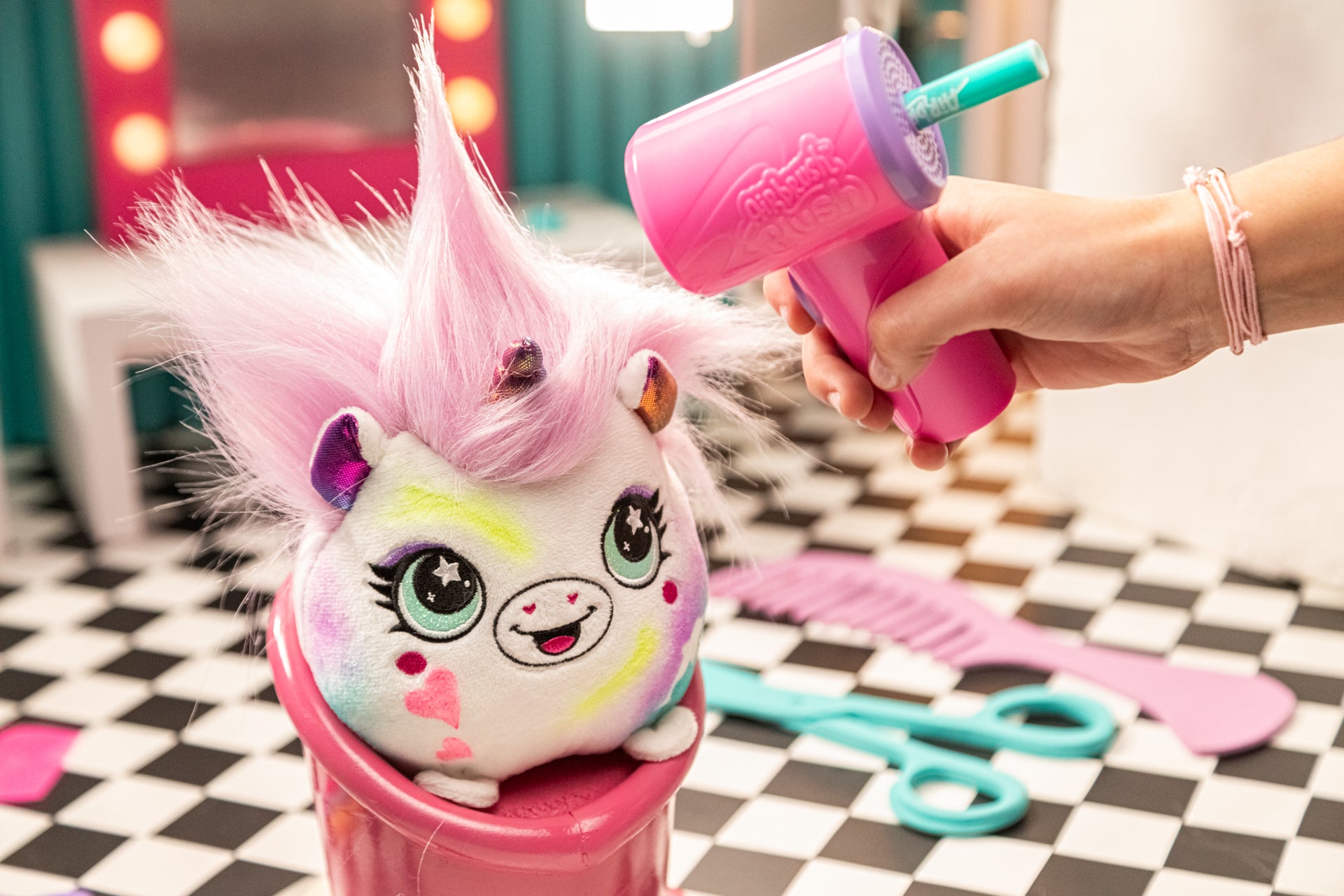 Hallo! Dürfen wir uns vorstellen. Wir sind Princess und Precious. Färbe uns und unsere Haare mit dem coolen Airbrush-Föhn, den Farbmarker Stiften und den verschiedenen Schablonen. Style dann noch unser Haar im lustig trendigen Look. Und wenn du uns anders aussehen lassen willst, wasche uns einfach unter lauwarmem Wasser und es kann wieder von Neuem losgehen! 2 Charaktere zum Sammeln.