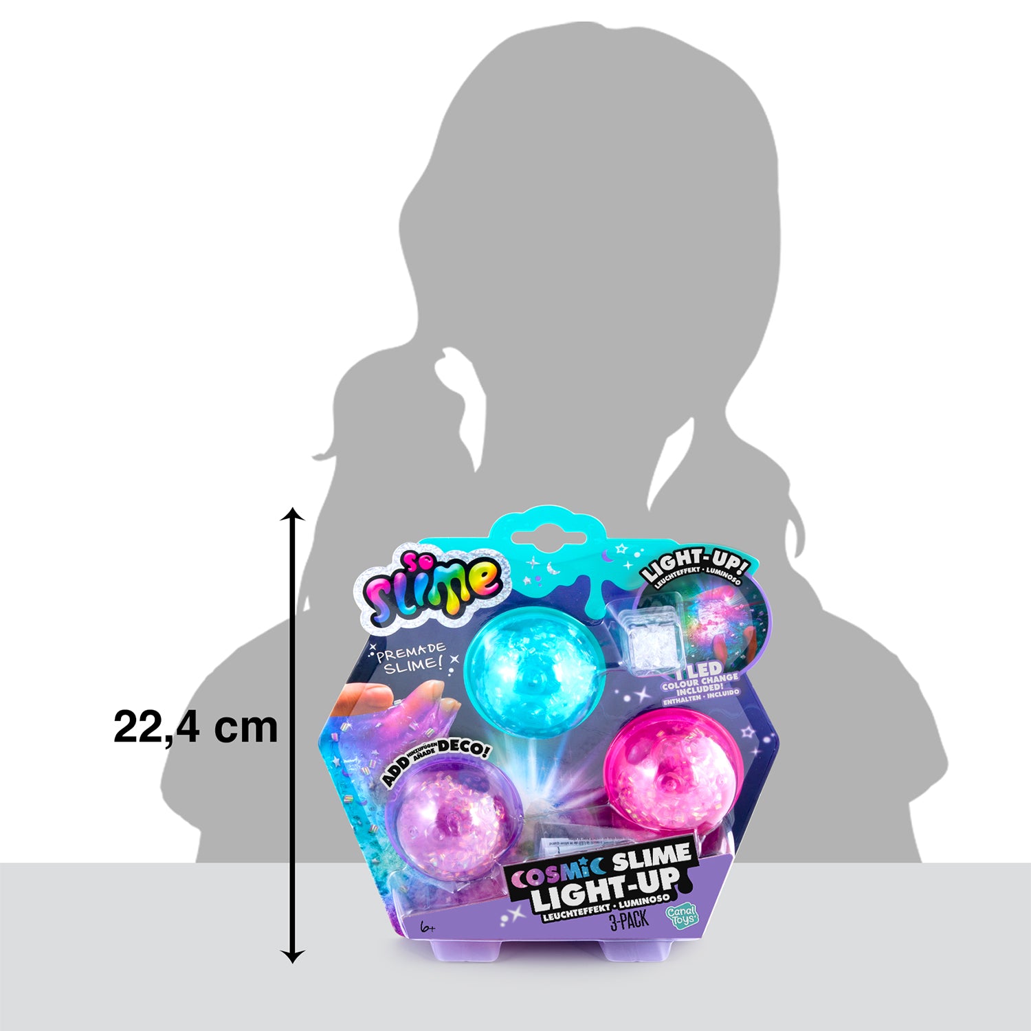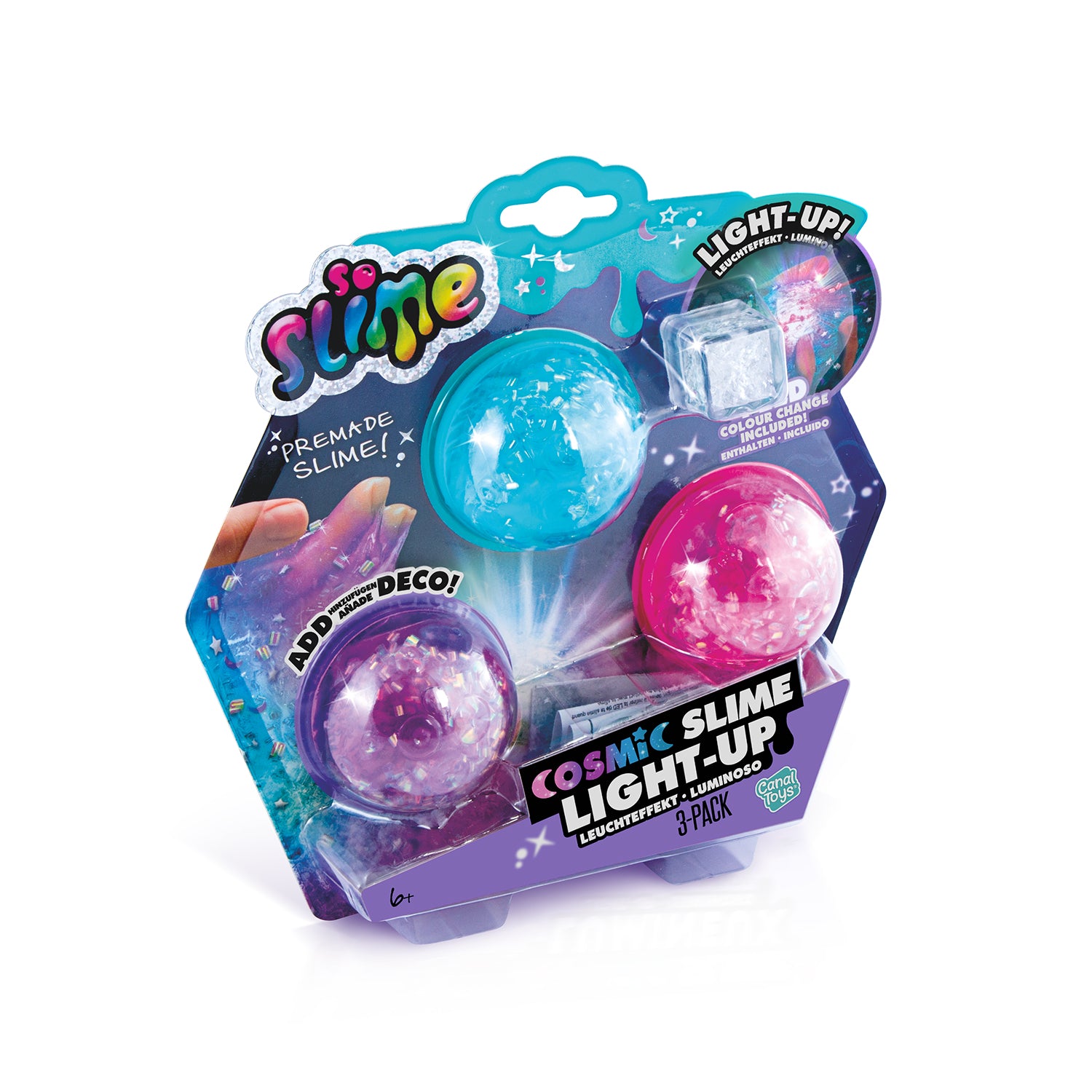 Gleich 3mal das ultimative Slime High-Tech Erlebnis in einem Set! Mit dem LED-Licht Würfel und der Deko, die du deinen 3 Sorten Slime hinzufügst, leuchten und glitzern sie in den tollsten Farb-Variationen. Ein einmaliges Erlebnis!