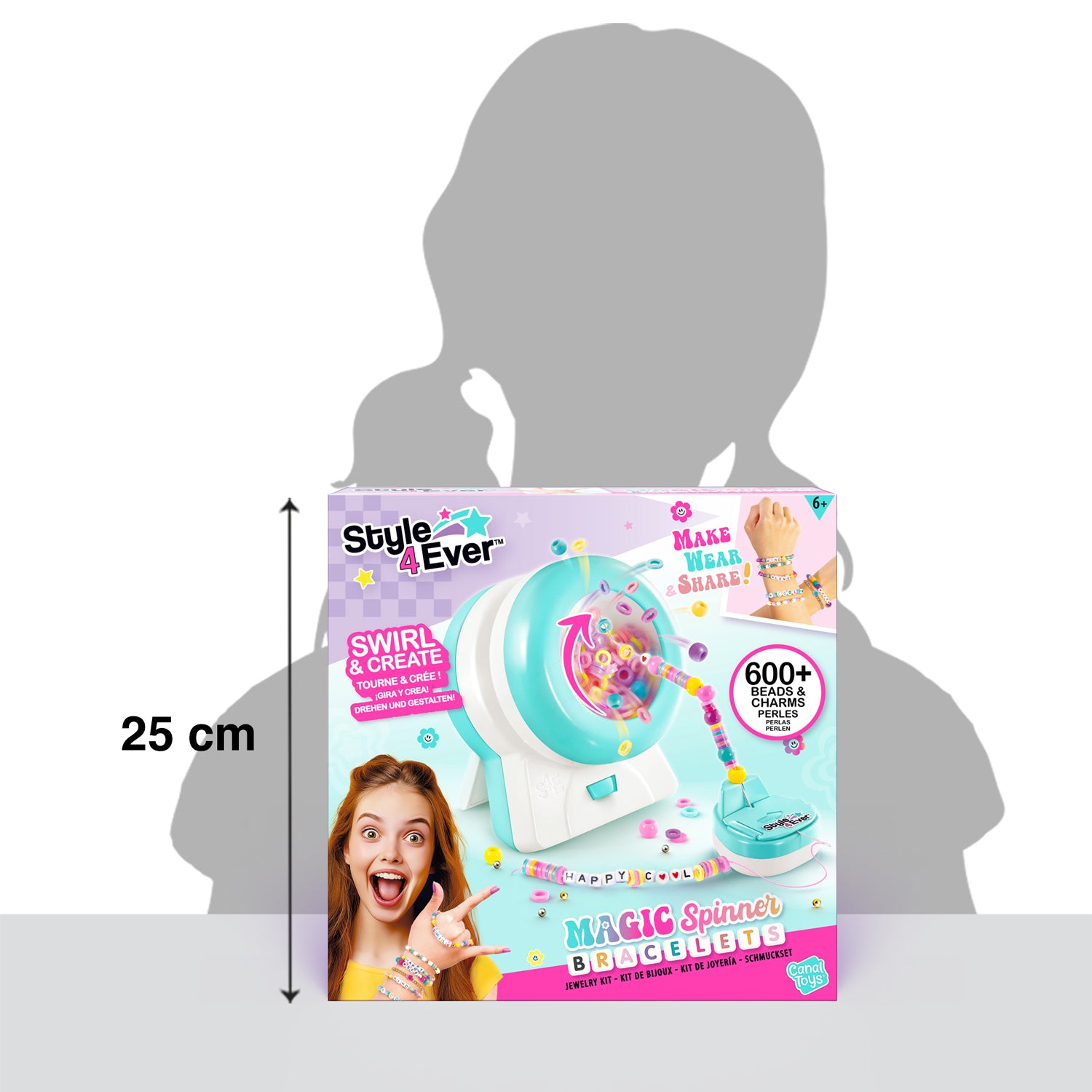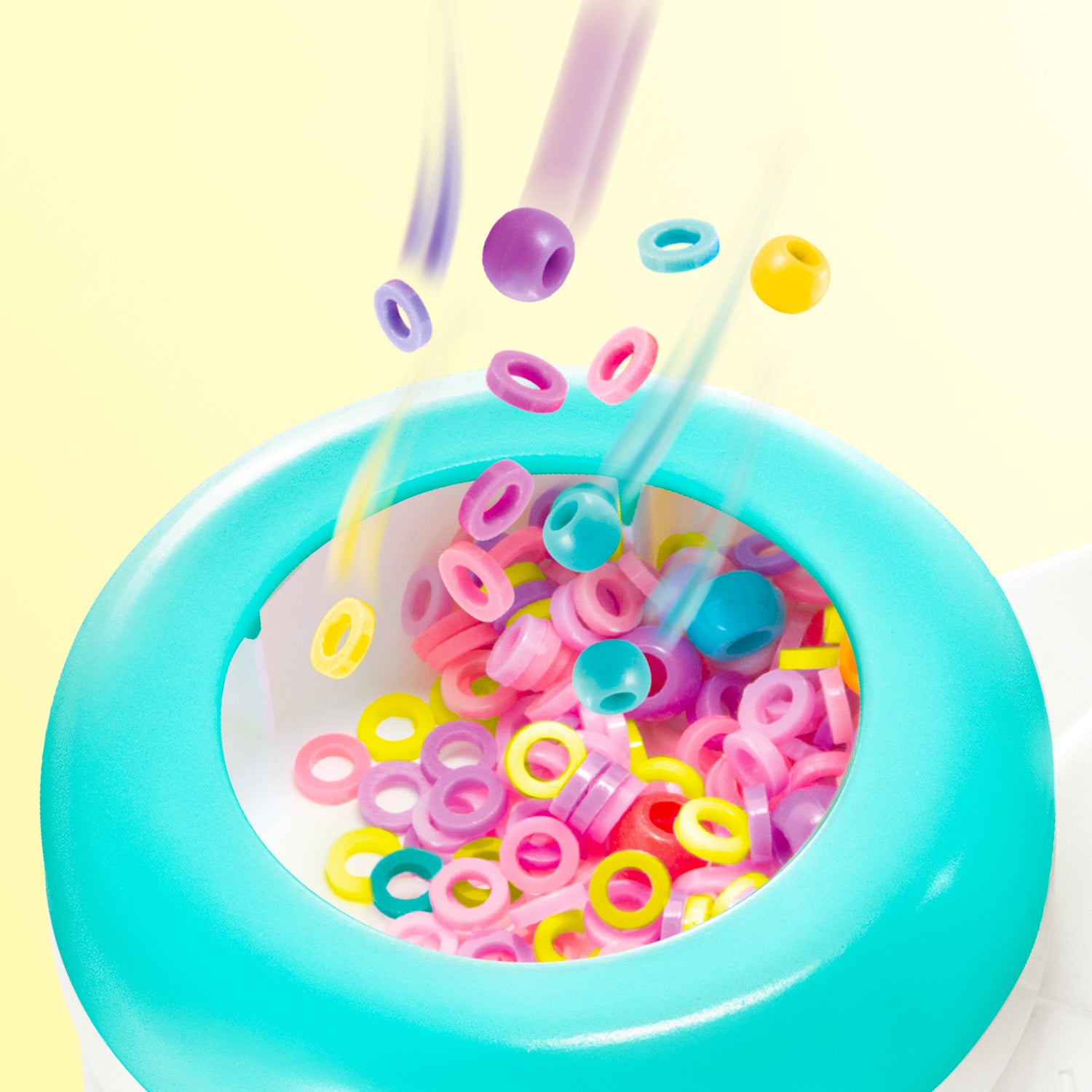 Freundschaftsbänder selber machen – mit dem Magic Spinner kein Problem. Diese Maschine fädelt die verschiedenen Perlen, die du in die Trommel gibst von selbst auf. Was du selbst tun musst, ist Namen oder Worte manuell einzufügen, das Armband auf die richtige Länge zu verknoten. Und schon kannst du es anziehen oder deinen Freundinnen oder Freunden schenken. Ein tolles Geschenk!