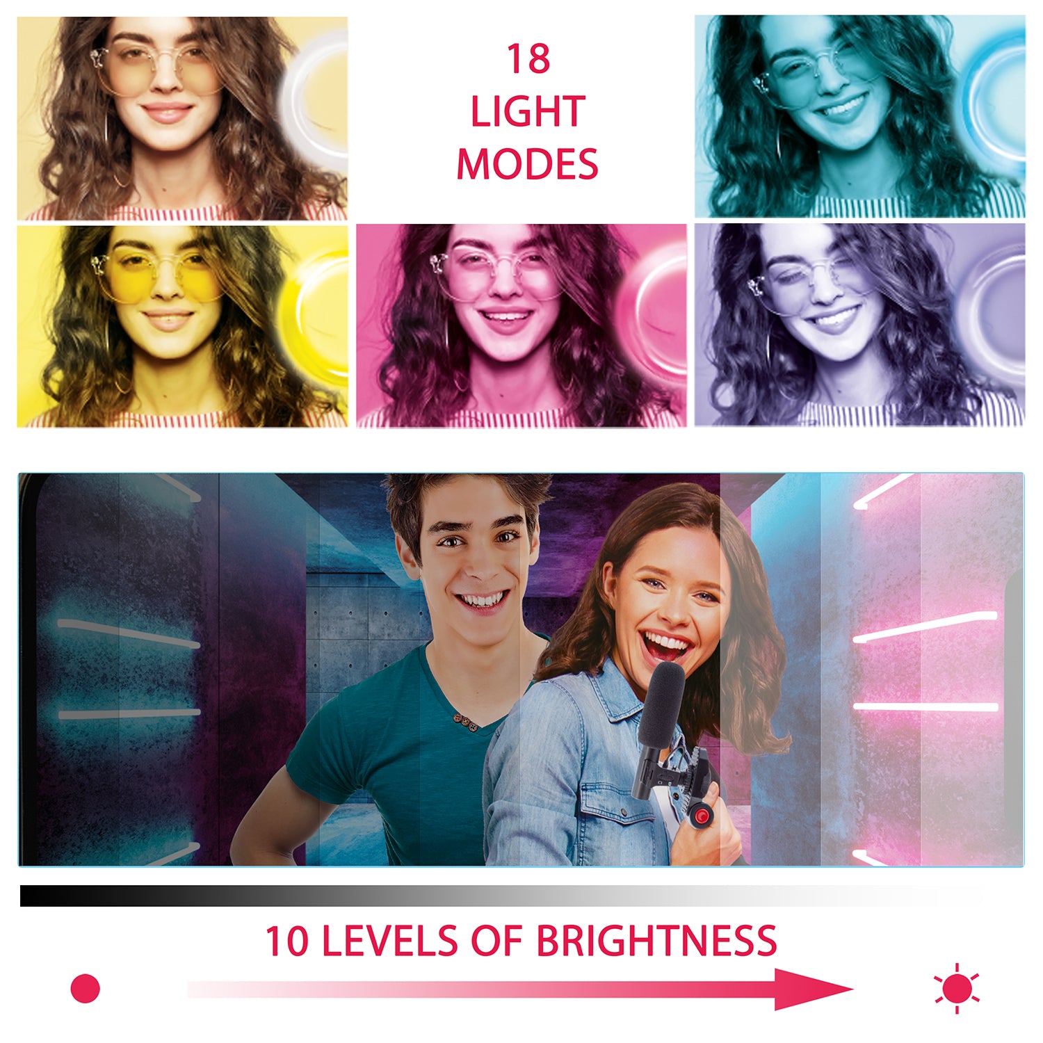 1 Multicolor 10'' LED Ringlicht mit 18 Farb-Modi, Fernbedienung und 3m Kabel